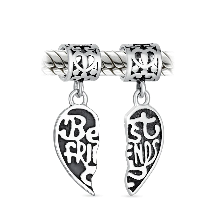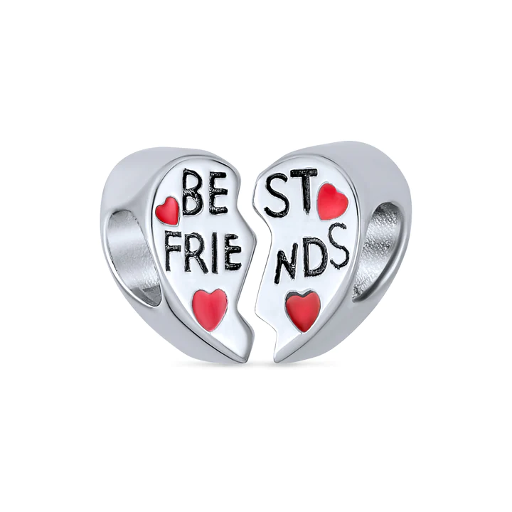 Share this friendship heart bead, even though you are far apart, your hearts are still together. The split Hearts bead set separates in two parts for your BFF, bestie, best friends.